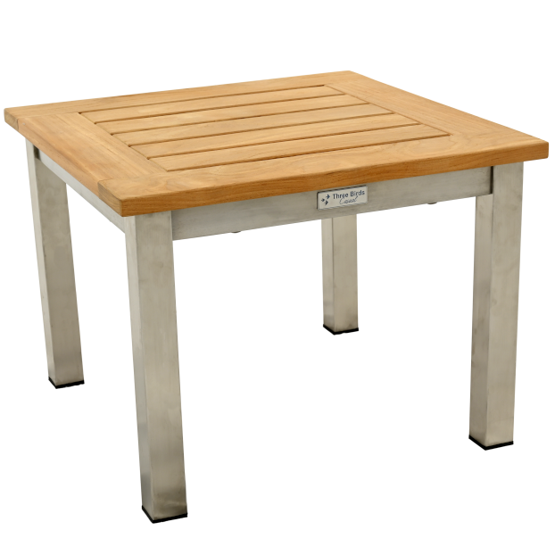 The Avanti 20" Low Square Side Table from Three Birds Casual combines sleek, stylish design with durability. Featuring frames made from marine-grade stainless steel, this table is built to withstand harsh weather, making it a perfect choice for both residential and commercial outdoor settings. The unique mix of teak and stainless steel gives the table a contemporary look, blending seamlessly with loungers or any other occasional seating. Whether for patios, resorts, or restaurants, this side table adds both elegance and functionality to your outdoor space.