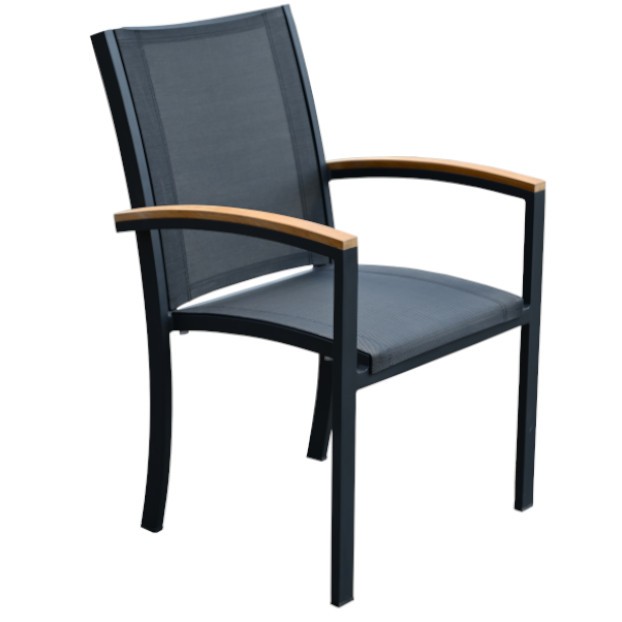 PRE-ORDER AVAILABLE 7.15.2025 - An achievement of modern elegance, the Tribeca collection harbors definitive lines and firm angles, making it the ideal companion to contemporary patios. The ability of each piece to stack up to six (6) units high adds unmatched levels of utility to larger outdoor spaces. The Tribeca collection features a rust-free aluminum frame, all-weather textilene sling, and grade-A Teak accents.