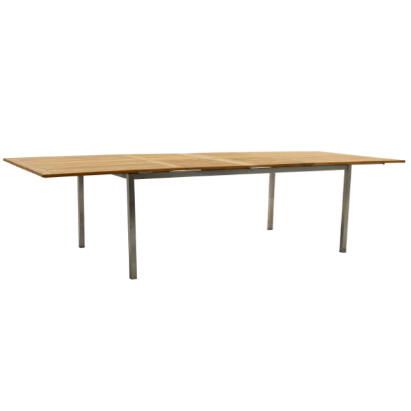 The Avanti Dining Extension Table 81"-121" from Three Birds Casual combines elegant design with functionality and durability. Crafted with marine-grade stainless steel frames and a high-quality teak tabletop, this extension table offers both style and performance in all weather conditions. With an adjustable length from 81" to 121", it is perfect for varying group sizes, making it an ideal choice for both residential and commercial settings. Whether for hosting family gatherings or outfitting restaurants and resorts, this versatile dining table blends beautifully with the rest of the Avanti collection, ensuring a sleek, modern look for any outdoor dining space.