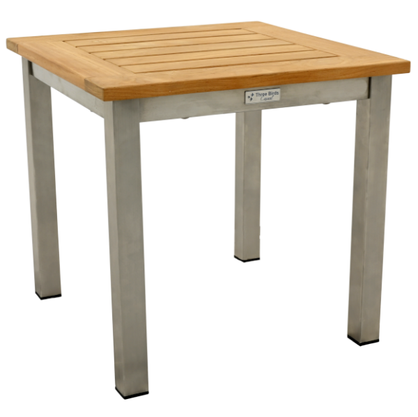 The Avanti 20" Tall Square Side Table from Three Birds Casual combines style with durability, featuring sleek marine-grade stainless steel frames and elegant teak accents. This side table is built to withstand all variations of harsh weather, making it ideal for both residential and commercial outdoor spaces. Whether paired with loungers or other seating arrangements, the contemporary design offers both beauty and functionality. This table seamlessly blends style with practicality, adding a refined touch to any patio, resort, or restaurant environment.