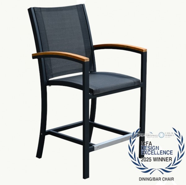A standout in modern outdoor design, the Award Winning Tribeca Counter Height Armchair pairs crisp lines with bold, architectural angles perfect for today’s contemporary patios, rooftop lounges, and stylish gathering spaces. Crafted with a rust-free aluminum frame, durable all-weather textilene sling, and warm grade-A teak accents, this piece blends long-lasting performance with a clean, sophisticated look. Tribeca brings modern elegance to the outdoors with materials built to last and a design made to impress.