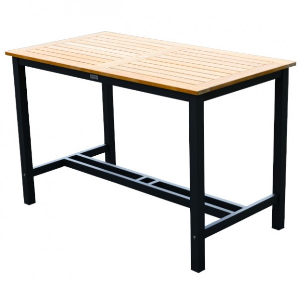 The SoHo 56" Counter Height Table blends modern design with the durability needed for outdoor living. The narrow and sleek design is built with the intention of use on balconies and rooftops, so that users are able to easily overlook the railing. Constructed with finely crafted aluminum frames and durable teak slats, this table offers a stylish and weather-resistant solution for any outdoor space. Designed to handle all types of weather environments, the SoHo collection ensures long-lasting beauty and functionality. This counter height table can stand alone or be paired with other pieces in the collection, providing endless possibilities for creating the perfect outdoor dining, balcony, or lounge area.