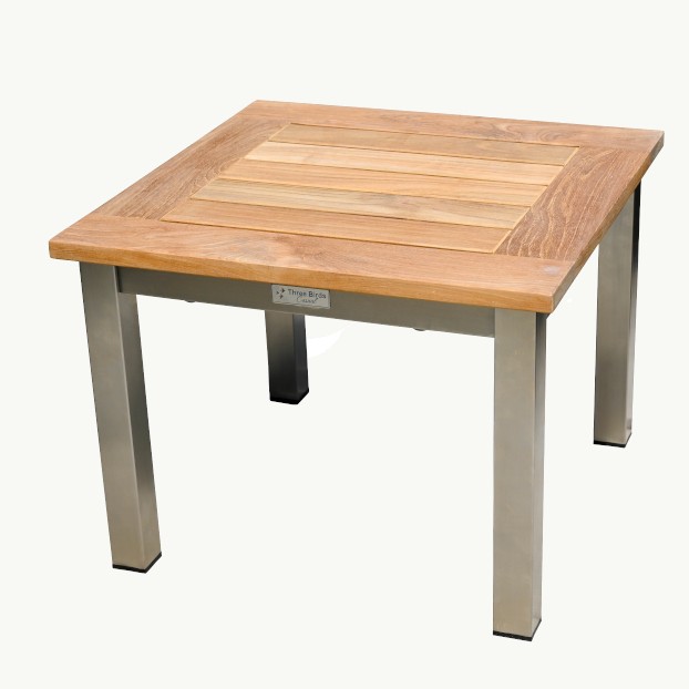The Avanti 20" Low Square Side Table from Three Birds Casual combines sleek, stylish design with durability. Featuring frames made from marine-grade stainless steel, this table is built to withstand harsh weather, making it a perfect choice for both residential and commercial outdoor settings. The unique mix of teak and stainless steel gives the table a contemporary look, blending seamlessly with loungers or any other occasional seating. Whether for patios, resorts, or restaurants, this side table adds both elegance and functionality to your outdoor space.