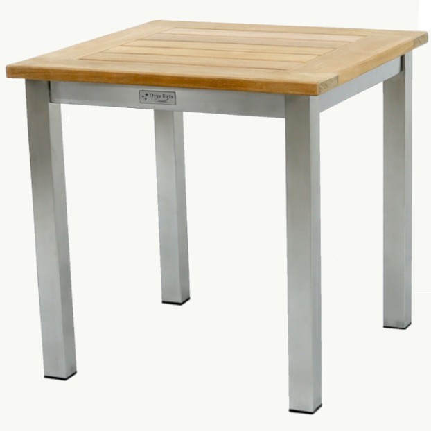 The Avanti 20" Tall Square Side Table from Three Birds Casual combines style with durability, featuring sleek marine-grade stainless steel frames and elegant teak accents. This side table is built to withstand all variations of harsh weather, making it ideal for both residential and commercial outdoor spaces. Whether paired with loungers or other seating arrangements, the contemporary design offers both beauty and functionality. This table seamlessly blends style with practicality, adding a refined touch to any patio, resort, or restaurant environment.