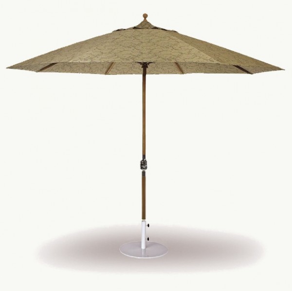 Enhance your outdoor dining area with the 11' Teak Umbrella Crank Lift from Three Birds Casual. Featuring a large span and easy-to-use crank lift system, this umbrella is designed to provide ample shade for medium to large-sized tables. Crafted from premium Sunbrella® fabric, it offers both style and durability, resisting fading and wear from the elements. The sturdy teak frame ensures long-lasting performance, making it an ideal choice for both residential and commercial settings. Whether for your patio or restaurant, this umbrella brings functional elegance to any outdoor space.