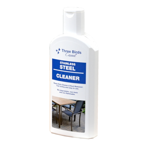 Stainless Steel Cleaner by Three Birds Casual is the perfect solution for removing rust, oxidation, and dirt from stainless steel surfaces. This cleaner is ideal for maintaining stainless steel products, as well as hardware on teak furniture, ensuring that all your outdoor furnishings look pristine and well-kept. Perfect for both residential and commercial use, this cleaner restores shine and helps prevent corrosion, extending the life and appearance of your stainless steel items. Whether for outdoor kitchens, tables, or the hardware on teak chairs, Stainless Steel Cleaner keeps your furniture looking fresh and ready for use year-round.